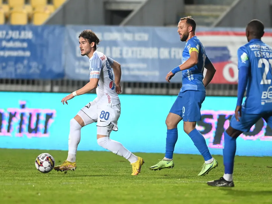 Alexi Paul Pitu si Cristian Daniel Negut in meciul de fotbal dintre Chindia Targoviste si Farul Constanta, contand pentru Superliga Superbet, desfasurat pe Stadionul Ilie Oana din Ploiesti, sambata 12 noiembrie 2022. © FOTO:Razvan Pasarica/SPORT PICTURES