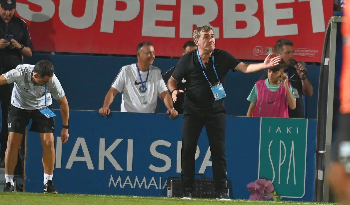 Gheorghe Hagi reactioneaza in meciul de fotbal dintre Farul Constanta si Universitatea Craiova, contand pentru Superliga Superbet, desfasurat pe Stadionul central al Academiei Gheorghe Hagi din Ovidiu, duminica 27 august 2023. © FOTO:Razvan Pasarica/SPORT PICTURES