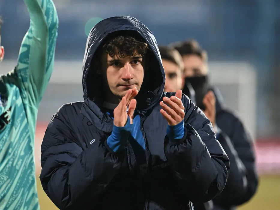 Nicolas Popescu saluta galeria dupa meciul de fotbal dintre Farul Constanta si UTA Arad, contand pentru Superliga Superbet, desfasurat pe Stadionul central al Academiei Gheorghe Hagi din Ovidiu, luni 20 ianuarie 2025. © FOTO:Razvan Pasarica/SPORT PICTURES