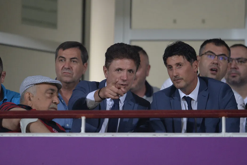 Gica Popescu (C) urmareste meciul de fotbal dintre echipele FCSB si FC Viitorul din etapa a VIII-a a Ligii 1, desfasurat pe stadionul Nicolae Dobrin din Pitesti, duminica, 1 septembrie 2019. ALEXANDRU DOBRE / MEDIAFAX FOTO