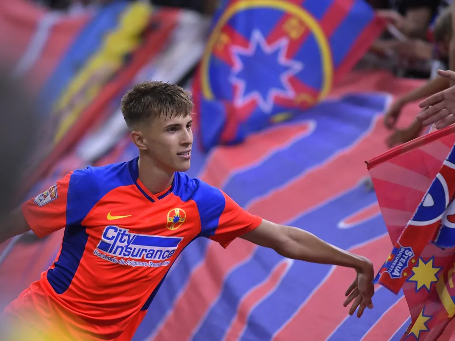 Octavian George Popescu saluta suporterii din peluza la meciul de fotbal dintre FCSB si FC Shakhter Karagandy, contand pentru Turul 2 preliminar din cadrul UEFA Confrence League, desfasurat pe Arena Nationala din Bucuresti, joi 22 iulie 2021. © FOTO:Razvan Pasarica/SPORT PICTURES