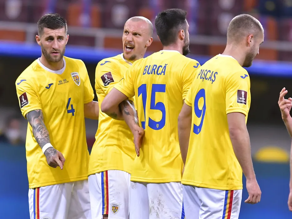 Ovidiu Popescu si Vlad Chiriches la zid in meciul de fotbal dintre Romania si Germania, din cadrul Preliminariilor Campionatului Mondial 2022, desfasurat fara spectatori pe Arena Nationala din Bucuresti, duminica 28 martie 2021. © FOTO:Razvan Pasarica/SPORT PICTURES