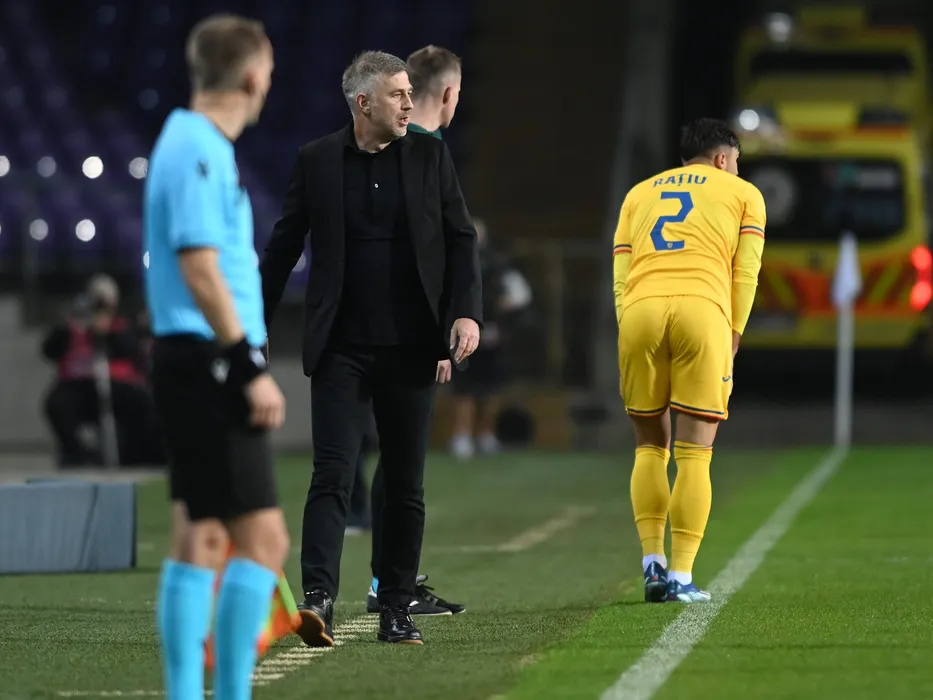 Edward Iordanescu reactioneaza in meciul de fotbal dintre Belarus si Romania, din cadrul preliminariilor Campionatului European 2024, desfasurat pe Stadionul Szusza Ferenc din Budapesta, joi 12 octombrie 2023. © FOTO:Razvan Pasarica/SPORT PICTURES