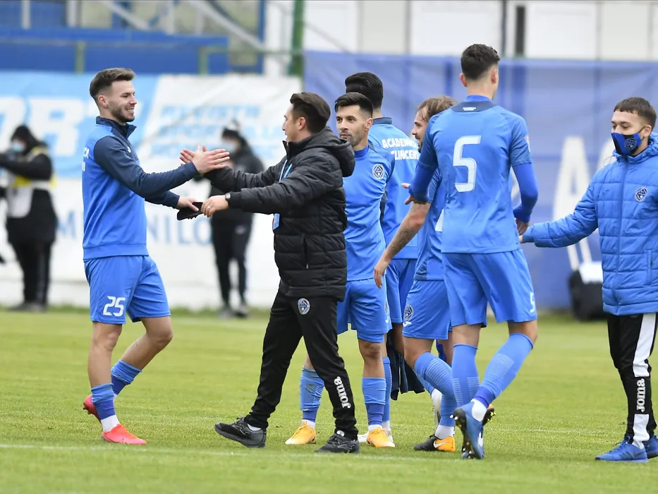 Ilie Poenaru isi felicita jucatorii Andrei Ioan Cordea si Paul Ovidiu Pirvulescu dupa meciul de fotbal dintre Academica Clinceni si Viitorul Constanta, contand pentru Liga 1 Casa Pariurilor, desfasurat pe Clinceni Arena din Clinceni, sambata 21 noiembrie 2020. © FOTO:Razvan Pasarica/SPORT PICTURES