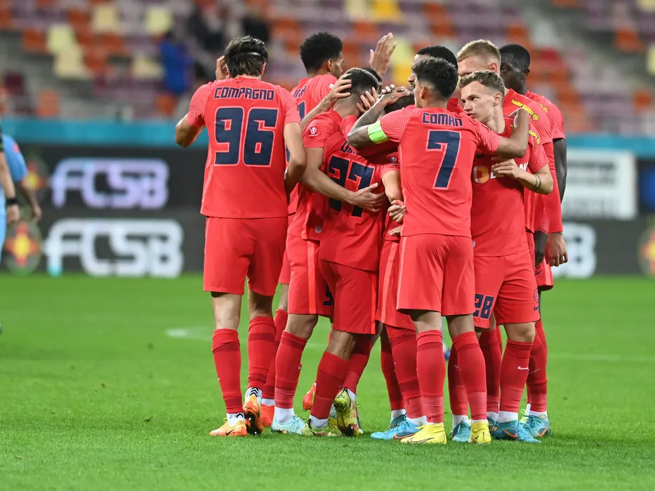 Bucurie a fotbalistilor stelisti Florinel Teodor Coman si Grigoras Alexandru Pantea dupa un gol marcat in meciul de fotbal dintre FCSB si UTA Arad, contand pentru Superliga Superbet, desfasurat pe Arena Nationala din Bucuresti, duminica 16 octombrie 2022. © FOTO:Razvan Pasarica/SPORT PICTURES