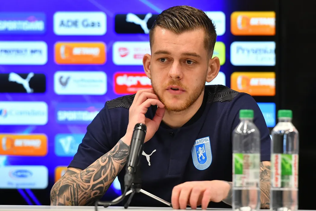 Alexandru Cicaldau jucatorul echipei de fotbal U Craiova sustine o conferinta de presa la stadionul Ion Oblemenco din Craiova joi 21 ianuarie 2021 . REMUS BADEA / MEDIAFAX FOTO