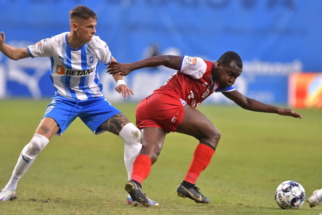 Stefan Baiaram si Hervin Ongenda in meciul de fotbal dintre Universitatea Craiova si FC Botosani, contand pentru Liga 1 Casa Pariurilor, desfasurat pe Stadionul Ion Oblemenco din Craiova, duminica 1 august 2021. © FOTO:Razvan Pasarica/SPORT PICTURES