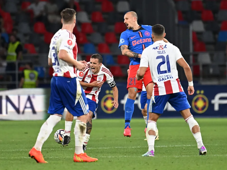 Juri Cisotti si Vlad Iulian Chiricheș in meciul dintre FCSB si Otelul Galati, contand pentru Superliga Superbet, desfasurat pe Stadionul Steaua-Ghencea din Bucuresti, vineri 26 iulie 2024. © FOTO:Razvan Pasarica/SPORT PICTURES