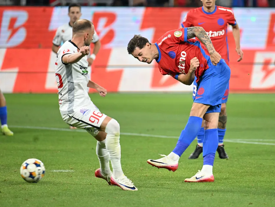 Silviu Nicolae Balaure si David Raul Miculescu in meciul dintre FCSB si FC Hermannstadt, contand pentru Superliga Superbet, desfasurat pe Stadionul Steaua-Ghencea din Bucuresti, sambata 12 iulie 2025. © FOTO:Razvan Pasarica/SPORT PICTURES