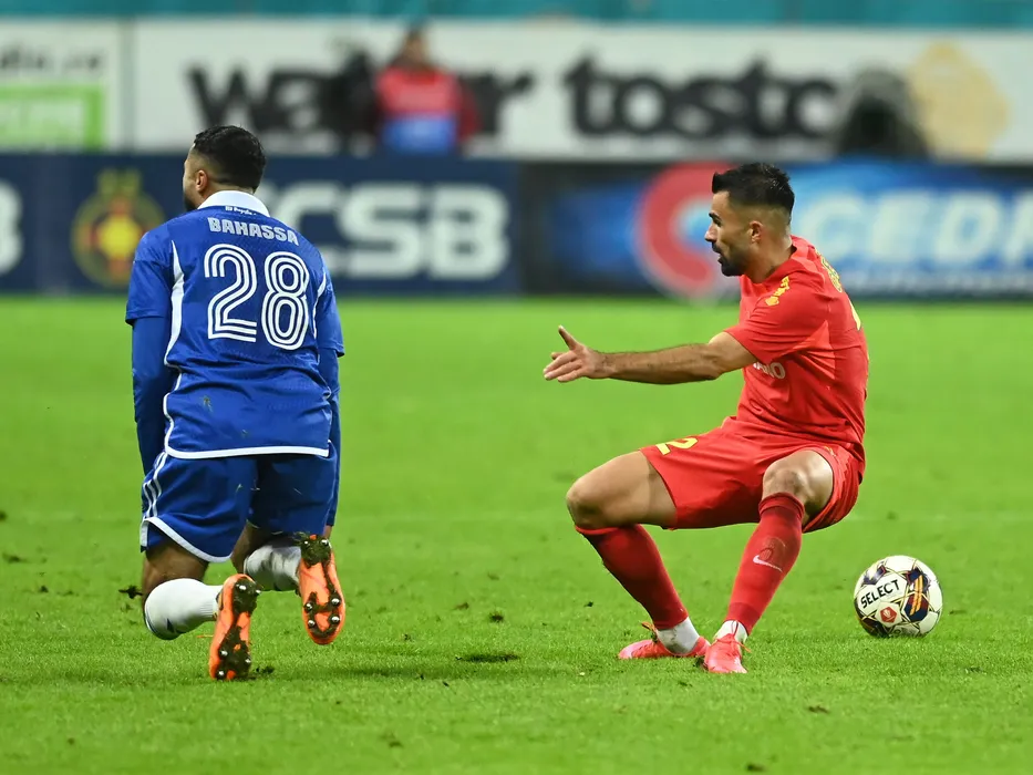 Valentin Cretu il faulteaza pe Yassine Bahassa in meciul de fotbal dintre FCSB si FC U Craiova, din cadrul Superligii Superbet, desfasurat pe Arena Nationala din Bucuresti, duminica 12 noiembrie 2023. © FOTO:Razvan Pasarica/SPORT PICTURES