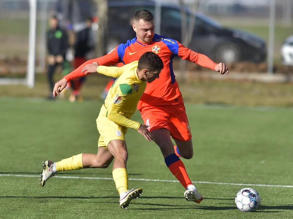 Daniel Marian Toma si Andrei George Miron in meciul amical de fotbal dintre FCSB si CS Mioveni, desfasurat la Centrul National de Fotbal de la Buftea, sambata 15 ianuarie 2022. © FOTO:Razvan Pasarica/SPORT PICTURES