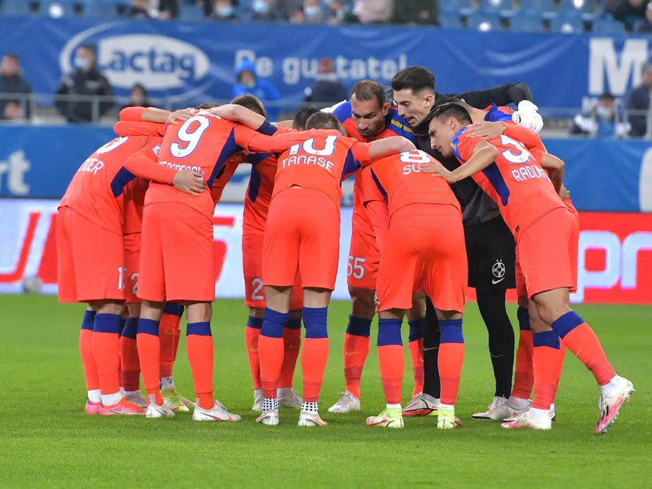 Fotbalistii stelisti /printre care Paulo Vinicius De Souza Nascimento, Andrei Daniel Vlad si Risto Radunovic se incurajeaza inaintea meciului de fotbal dintre Universitatea Craiova si FCSB, contand pentru Liga 1 Casa Pariurilor, desfasurat pe Stadionul Ion Oblemenco din Craiova, duminica 28 noiembrie 2021. Craiova *** Steaua footballers including Paulo Vinicius De Souza Nascimento, Andrei Daniel Vlad and Risto Radunovic are encouraged before the football match between Universitatea Craiova and FCSB, counting for Liga 1 Casa Pariurilor, played on Ion Oblemenco Stadium in Craiova, Sunday, November 28, 2021 Craiova Copyright: xRazvanxPasarica/SPORTxPICTURESx