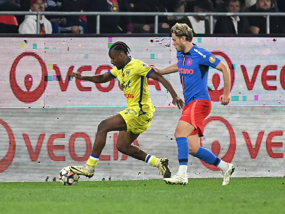 Tidiane Keita si William Guido R Baeten in meciul de fotbal dintre FCSB si Petrolul Ploiesti, contand pentru Superliga Superbet, desfasurat pe Stadionul Steaua-Ghencea din Bucuresti, sambata 21 septembrie 2024. © FOTO:Razvan Pasarica/SPORT PICTURES
