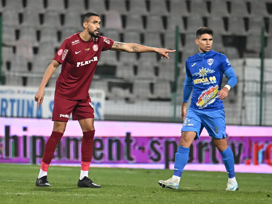 Bolgado Leonardo Da Costa reacționează alături de Ricardo Manuel Pinho Matos in meciul de fotbal dintre Gloria Buzau si CFR Cluj, contand pentru Superliga Superbet, desfasurat pe Stadionul Municipal din Buzau, vineri 1 noiembrie 2024. © FOTO:Razvan Pasarica/SPORT PICTURES