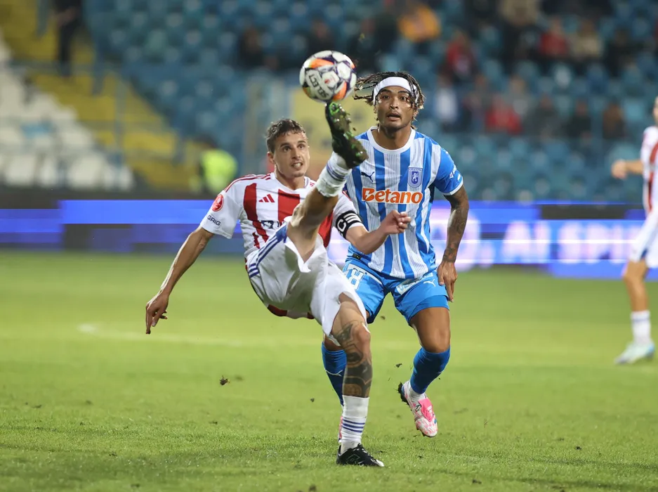Juri Cisotti și Takuto Oshima în meciul de fotbal dintre SC Oțelul Galați si Universitatea Craiova, contând pentru Superliga Superbet, desfășurat pe Stadionul Oțelul din Galați, sâmbătă 5 octombrie 2024. © FOTO: Sorin PANĂ/SPORT PICTURES