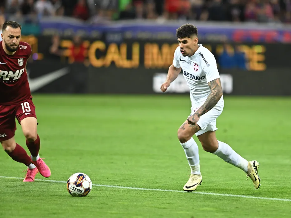 Vasile Mogos si Florinel Teodor Coman în meciul de fotbal dintre FCSB si CFR Cluj, contând pentru Play off-ul Superligii Superbet, desfășurat pe Arena Nationala din Bucuresti, sambata 11 mai 2024. © FOTO: Razvan Pasarica/SPORT PICTURES