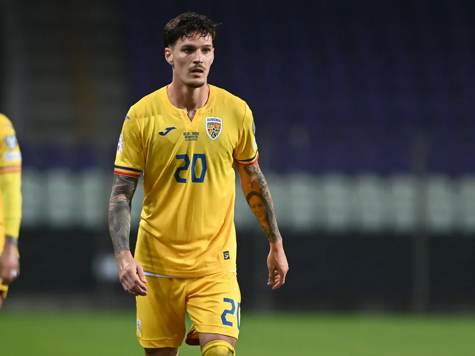 Dennis Man reactioneaza in meciul de fotbal dintre Belarus si Romania, din cadrul preliminariilor Campionatului European 2024, desfasurat pe Stadionul Szusza Ferenc din Budapesta, joi 12 octombrie 2023. © FOTO:Razvan Pasarica/SPORT PICTURES