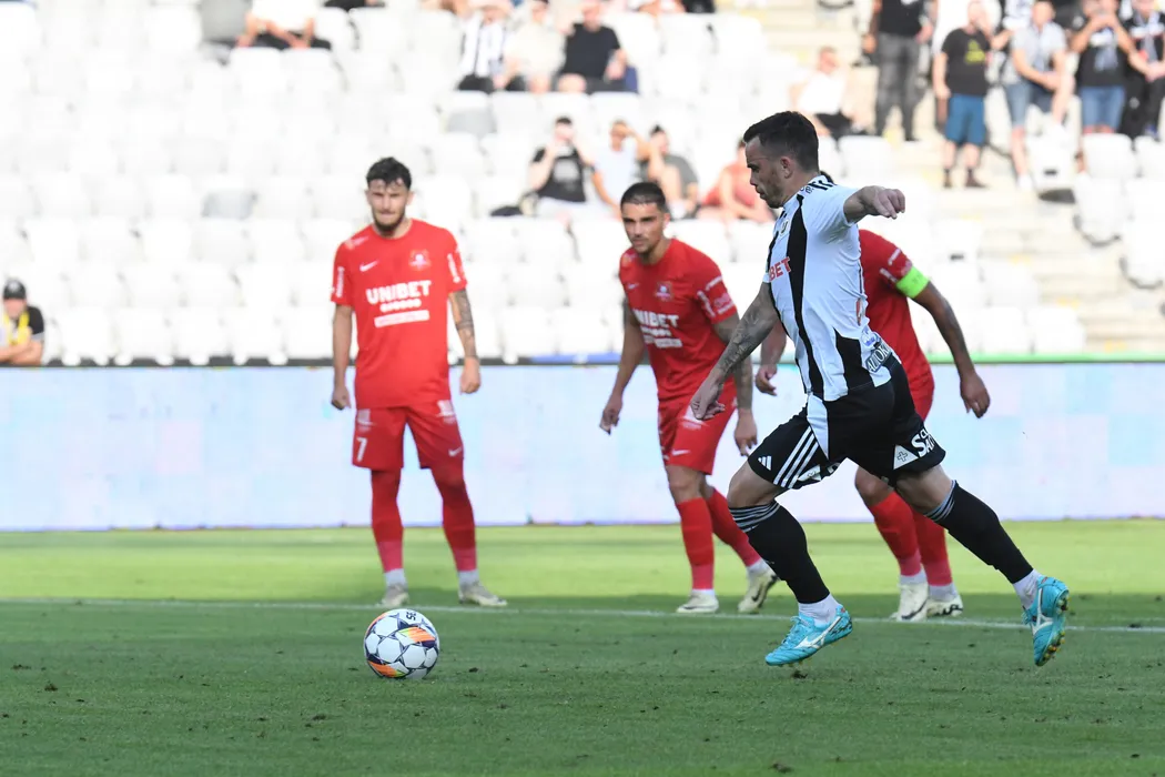 Dan Nicolae Nistor execută o lovitură de la 11m în meciul de fotbal dintre FC Universitatea Cluj și AFC Hermannstadt contând pentru SUPERLIGA SUPERBET, desfășurat pe Stadionul CLUJ ARENA din Cluj-Napoca, duminică 21 iulie 2024. © FOTO: Flaviu BUBOI/SPORT PICTURES