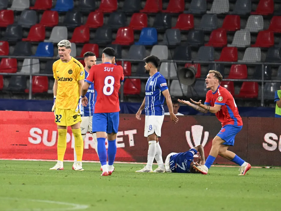 Ștefan Târnovanu reactioneaza alaturi de Ionuț Daniel Vână si Grigoraș Alexandru Pantea in meciul dintre FCSB si Farul Constanta, contand pentru Superliga Superbet, desfasurat pe Stadionul Steaua-Ghencea din Bucuresti, sambata 26 iulie 2025. © FOTO:Razvan Pasarica/SPORT PICTURES