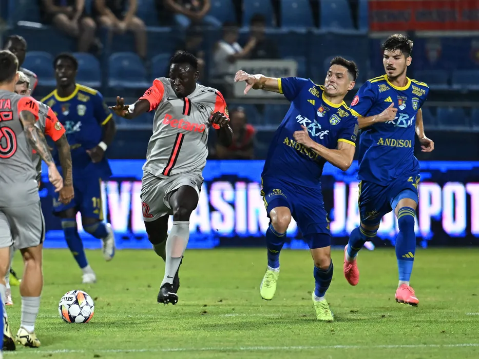 Baba Alhassan, Marius Paul Antoche si Stefan Cristinel Pacionel in meciul dintre Unirea Slobozia si FCSB, contand pentru Superliga Superbet, desfasurat pe Clinceni Arena din Clinceni, vineri 19 iulie 2024. © FOTO:Razvan Pasarica/SPORT PICTURES