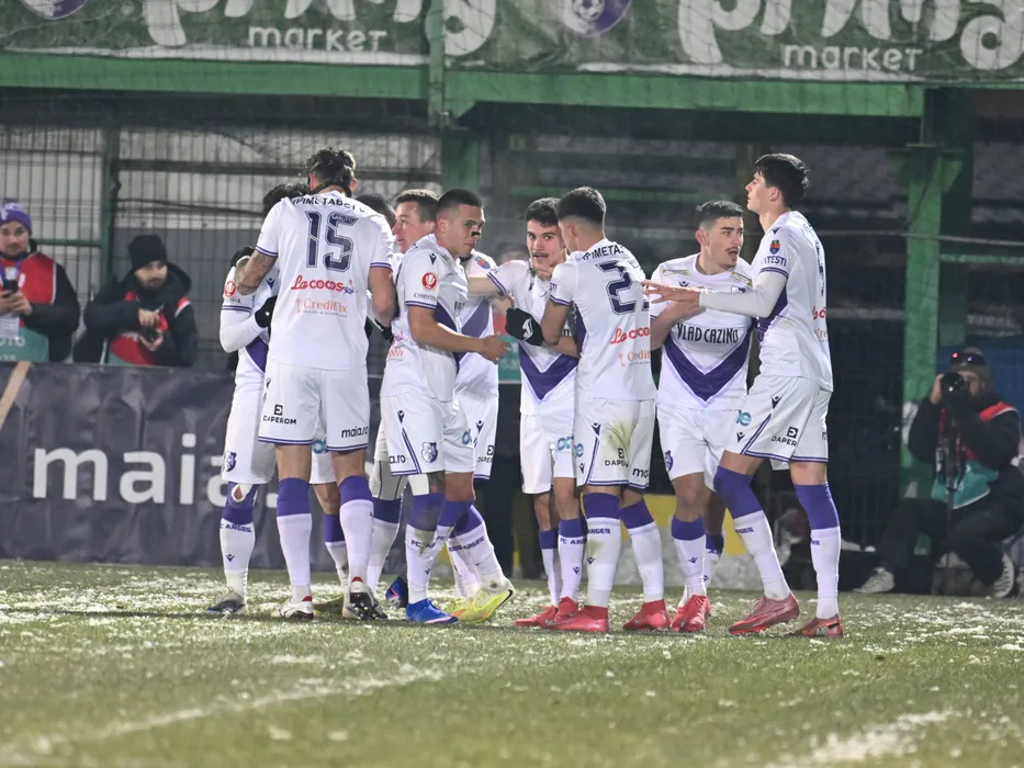 Argeșenii celebrează golul marcat de Yanis Pîrvu în meciul cu FCSB. Foto: Sport Pictures