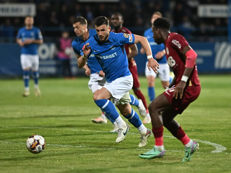 Mihai Popescu în meciul de fotbal dintre Farul Constanta si CFR Cluj, contând pentru Play off-ul Superligii Superbet, desfășurat pe Stadionul central al Academiei Gheorghe Hagi din Ovidiu, vineri 19 aprilie 2024. © FOTO: Razvan Pasarica/SPORT PICTURES