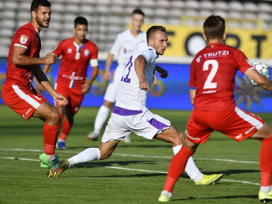 Andrei Chindris si Vasile Buhaescu in meciul de fotbal dintre FC Arges si FC Botosani, contand pentru Liga 1 Casa Pariurilor, desfasurat pe Stadionul Nicolae Dobrin din Pitesti, vineri 21 august 2020. © FOTO:Razvan Pasarica/SPORT PICTURES