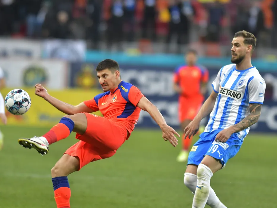 Iulian Lucian Cristea si Elvir Koljic in meciul de fotbal dintre FCSB si Universitatea Craiova, contand pentru Play-off-ul Ligii 1 Casa Pariurilor, desfasurat pe Arena Nationala din Bucuresti, duminica 3 aprilie 2022. © FOTO:Razvan Pasarica/SPORT PICTURES
