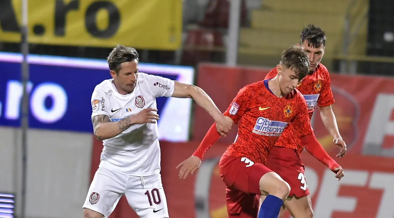 Ciprian Ioan Deac, Octavian George Popescu si Risto Radunovic in meciul de fotbal dintre FCSB si CFR Cluj, contand pentru Play-off-ul Ligii 1 Casa Pariurilor, desfasurat fara spectatori pe Stadionul Marin Anastasovici din Giurgiu, luni 3 mai 2021. © FOTO:Razvan Pasarica/SPORT PICTURES