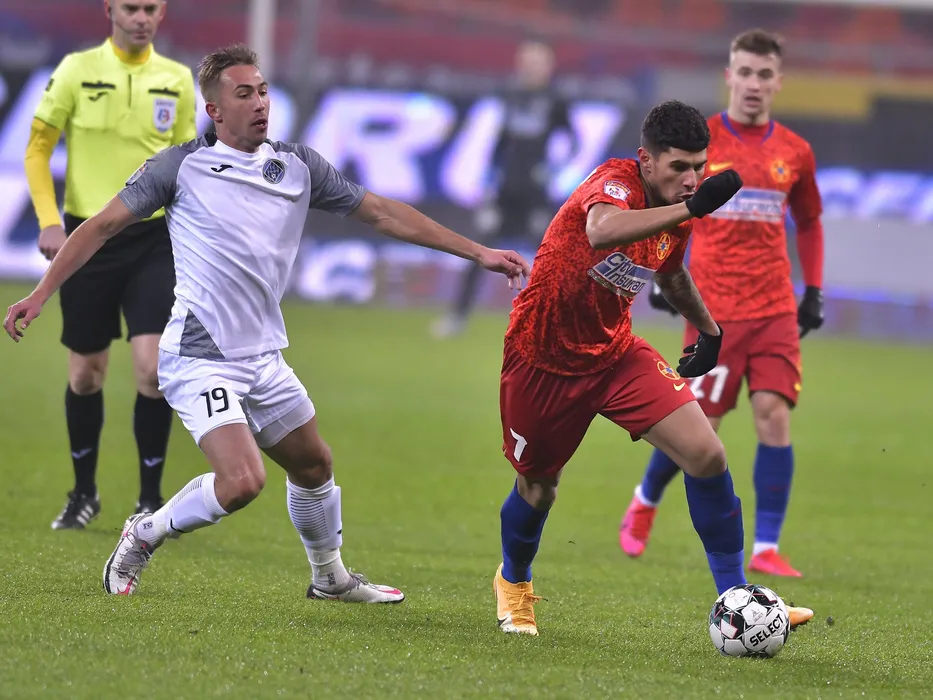 Denis Ventura si Florinel Teodor Coman in meciul de fotbal dintre FCSB si Academica Clinceni, contand pentru Liga 1 Casa Pariurilor, desfasurat fara spectatori pe Arena Nationala din Bucuresti, duminica 7 februarie 2021. © FOTO:Razvan Pasarica/SPORT PICTURES
