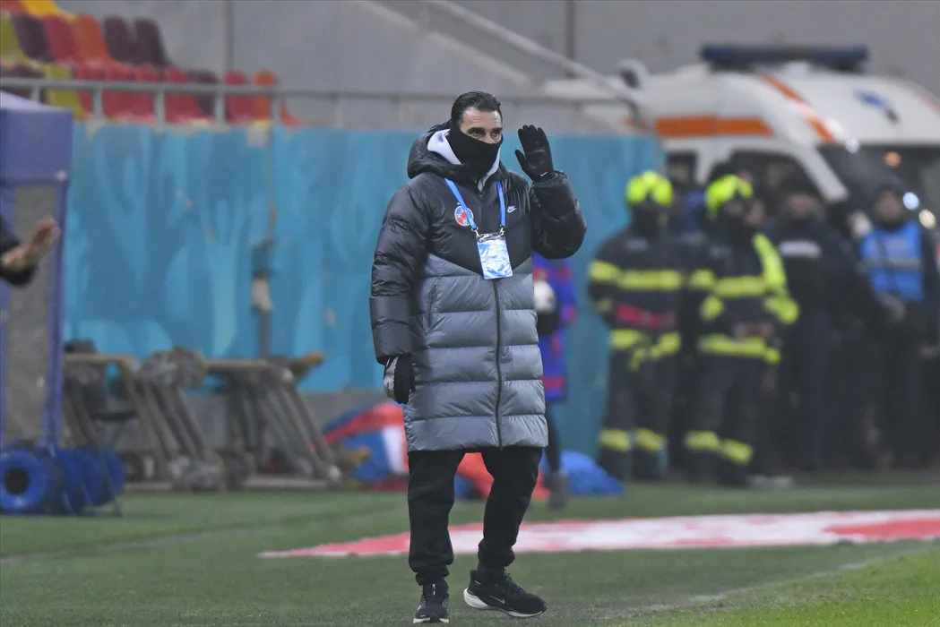 Ilias Charalampous, antrenorul echipei FCSB, urmareste meciul de fotbal contra formatiei CFR Cluj din etapa a XXIII-a a Superligii, disputat pe Arena Nationala din Bucuresti, duminica, 25 ianuarie 2026. ALEXANDRU DOBRE / MEDIAFAX FOTO