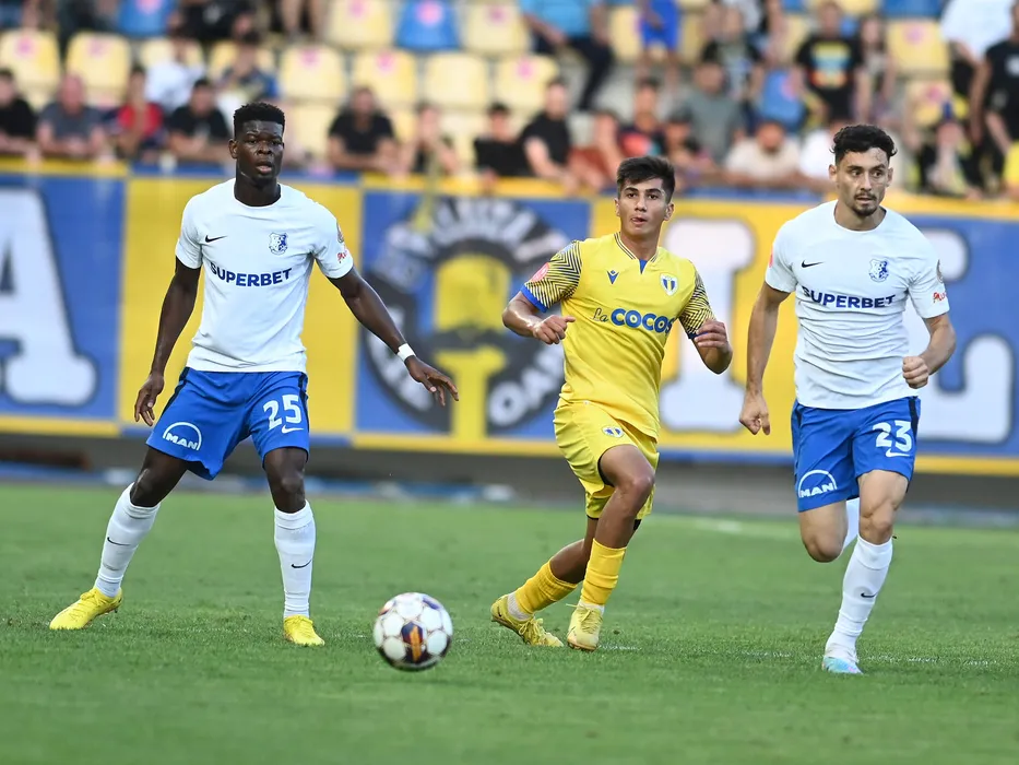 David Enagnon Kiki,Alexandru Marian Musi si Nicolae Carnat in meciul de fotbal dintre Petrolul Ploiesti si Farul Constanta, din cadrul Superligii Superbet, desfasurat pe Stadionul Ilie Oana din Ploiesti, duminica 6 august 2023. © FOTO:Razvan Pasarica/SPORT PICTURES