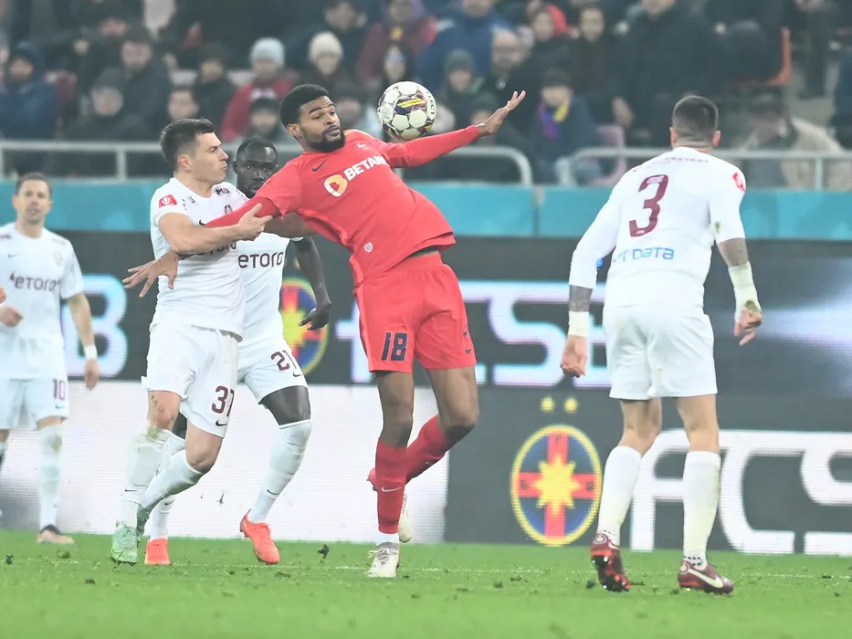Mihai Catalin Bordeianu, Bismark Adjei Boateng si Sylas Laouari Edjouma Malcom in meciul de fotbal dintre FCSB si CFR Cluj, contand pentru Superliga Superbet, desfasurat pe Arena Nationala din Bucuresti, joi 15 decembrie 2022. © FOTO:Razvan Pasarica/SPORT PICTURES