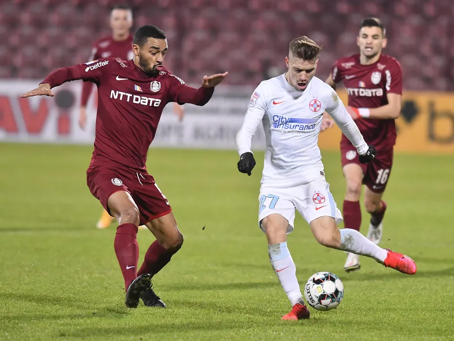 Yacouba Sylla si Darius Dumitru Olaru in meciul de fotbal dintre CFR Cluj si FCSB, contand pentru Liga 1 Casa Pariurilor, desfasurat fara spectatori pe Stadionul Dr. Constantin Radulescu din Cluj Napoca, duminica 13 decembrie 2020. © FOTO:Razvan Pasarica/SPORT PICTURES