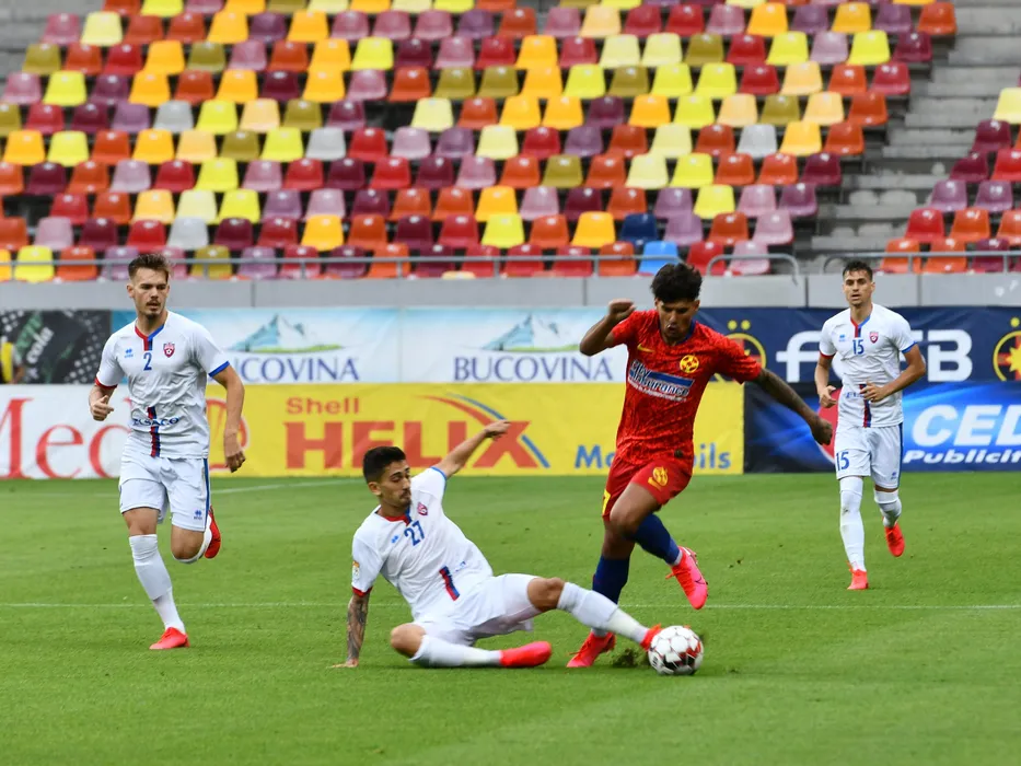 Denis Gratian Harut, Eduard Marian Florescu si Florinel Coman in meciul de fotbal dintre FCSB si FC Botosani, contand pentru play-off-ul Ligii 1 Casa Pariurilor, disputat fara spectatori pe Arena Nationala din Bucuresti, sambata 4 iulie 2020. © FOTO:Razvan Pasarica/SPORT PICTURES