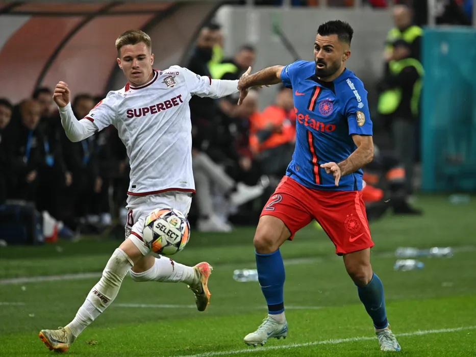 Phillipe Răzvan Onea si Valentin Crețu in meciul de fotbal dintre FCSB si Rapid Bucuresti, contand pentru Superliga Superbet, desfasurat pe Arena Nationala din Bucuresti, duminica 27 octombrie 2024. © FOTO:Razvan Pasarica/SPORT PICTURES