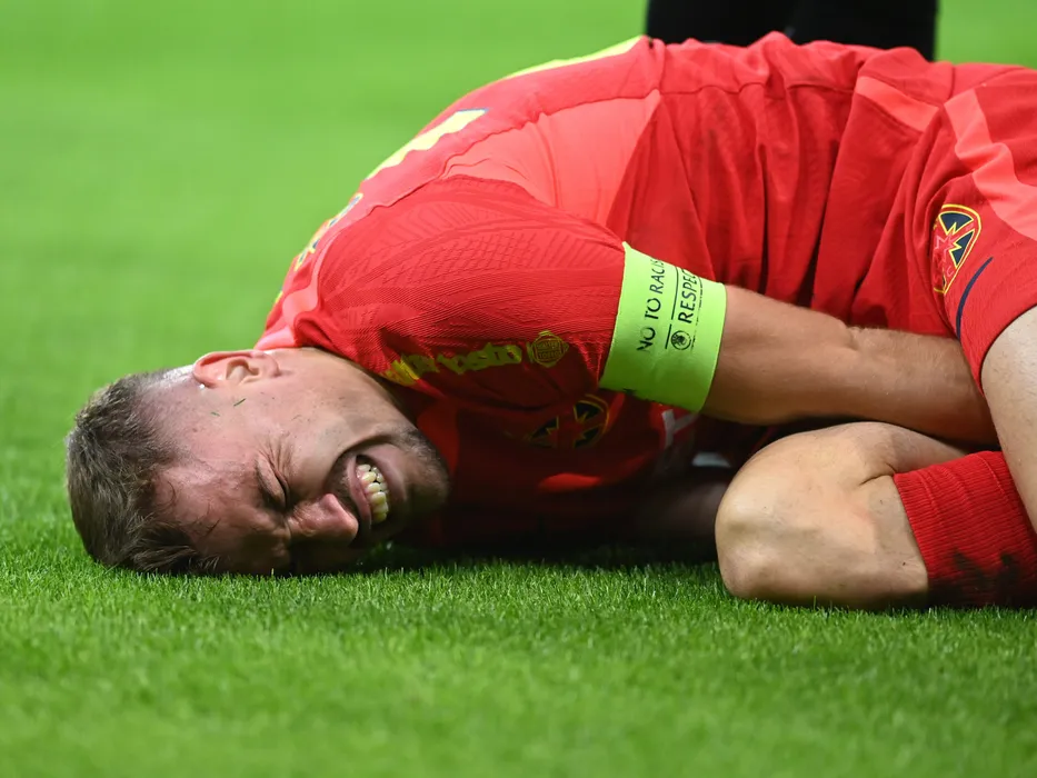 Darius Dumitru Olaru la pamant in meciul de fotbal dintre FCSB si Rapid Bucuresti, din cadrul Superligii Superbet, desfasurat pe Arena Nationala din Bucuresti, duminica 5 noiembrie 2023. © FOTO:Razvan Pasarica/SPORT PICTURES