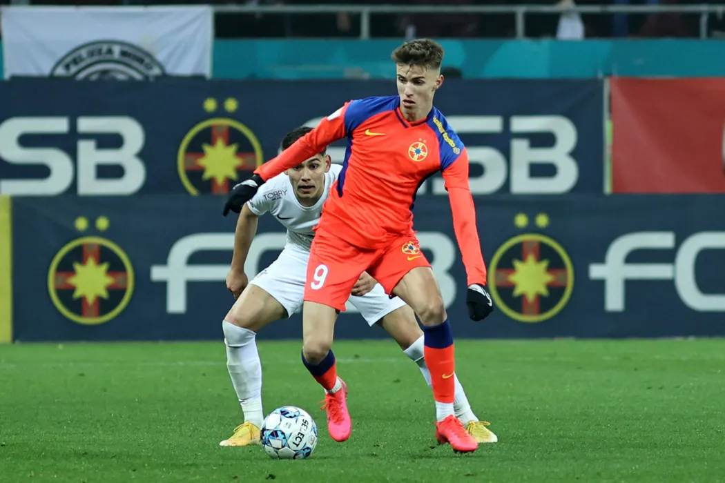 Octavian Popescu, de la FCSB, suteaza in timpul meciului de fotbal contra echipei Rapid din etapa a XX-a a Ligii 1, disputat pe Arena Nationala din Bucuresti, miercuri, 15 decembrie 2021. GEORGE FILIP / MEDIAFAX FOTO