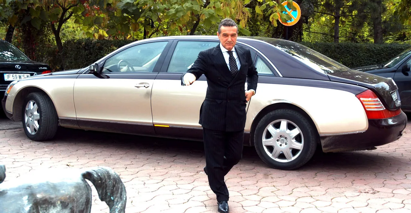 Gigi Becali (finantator Steaua Bucuresti) alaturi de masina sa Maybach.