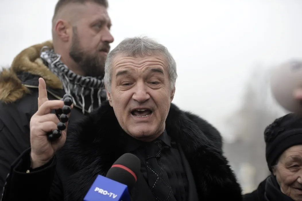 George Becali reactioneaza la intrebarile jurnalistilor prezenti la Catedrala Mantuirii Neamului, inainte de a participa la slujba de sfintire a altarului lacasului de cult, duminica 25 noiembrie 2018, in Bucuresti. ANDREEA ALEXANDRU / MEDIAFAX FOTO