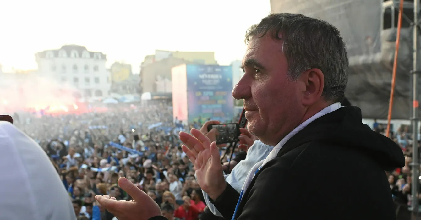 Gheorghe Hagi se bucura alaturi de suporteri in Piata Ovidiu din Constanta, cu ocazia prezentarii trofeului, luni 22 mai 2023. © FOTO:Razvan Pasarica/SPORT PICTURES