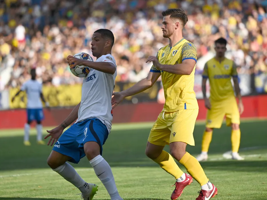 Rivaldinho (Mosca Rivaldo Vitor Ferreira) si Bart Adrianus Johannes Meijers in meciul de fotbal dintre Petrolul Ploiesti si Farul Constanta, din cadrul Superligii Superbet, desfasurat pe Stadionul Ilie Oana din Ploiesti, duminica 6 august 2023. © FOTO:Razvan Pasarica/SPORT PICTURES