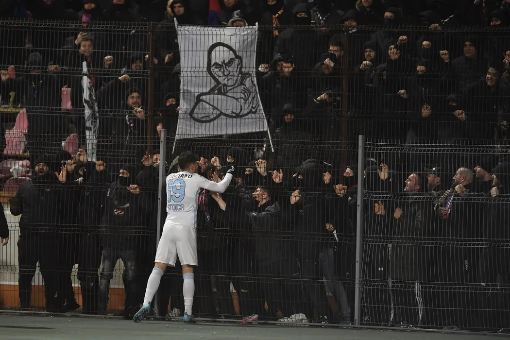 Ianis Stoica (S), de la FCSB, reactioneaza dupa ce a inscris un gol in timpul meciului de fotbal contra echipei Dinamo din etapa a XXIII-a a Ligii 1, disputat pe stadionul Dinamo din Bucuresti, duminica, 30 ianuarie 2022 ALEX NICODIM / MEDIAFAX FOTO