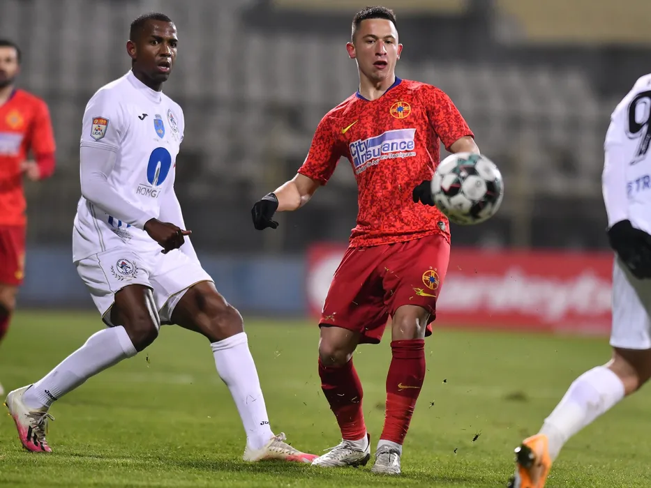 Nicolao Manuel Dumitru Cardoso si Olimpiu Vasile Morutan in meciul de fotbal dintre Gaz Metan Medias si FCSB, contand pentru Liga 1 Casa Pariurilor, desfasurat fara spectatori pe Stadionul Municipal din Medias, luni 23 noiembrie 2020. © FOTO:Razvan Pasarica/SPORT PICTURES