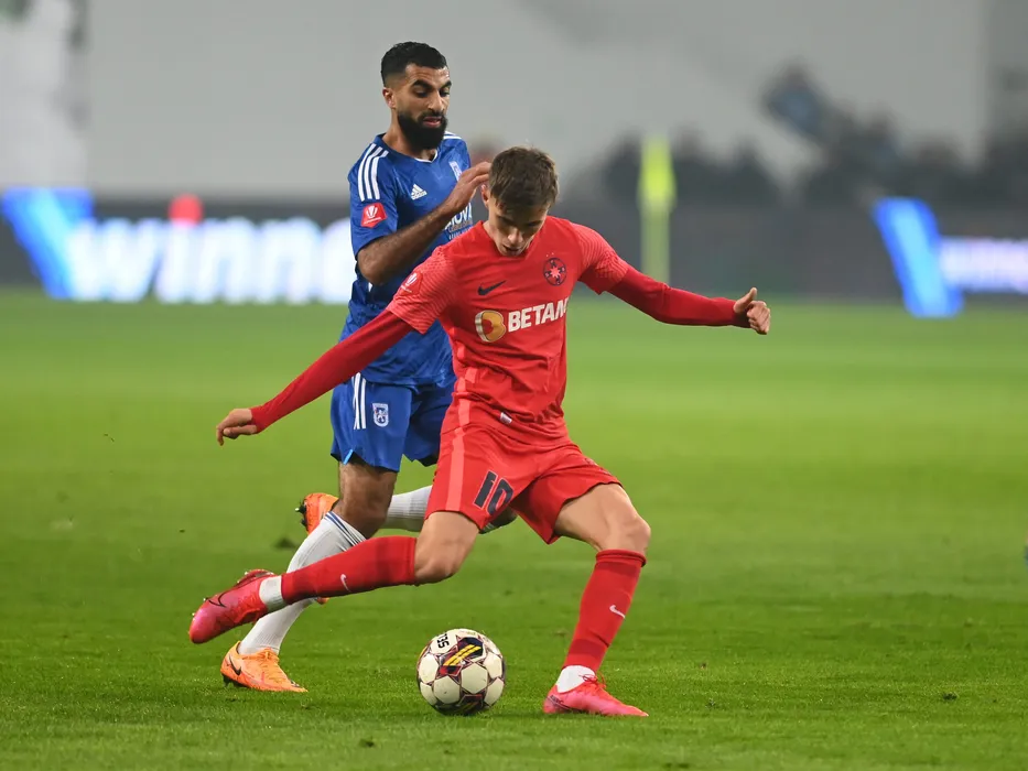 Yassine Bahassa si Octavian George Popescu in meciul de fotbal dintre FC U Craiova si FCSB, contand pentru Superliga Superbet, desfasurat pe Stadionul Ion Oblemenco din Craiova, duminica 13 noiembrie 2022. © FOTO:Razvan Pasarica/SPORT PICTURES
