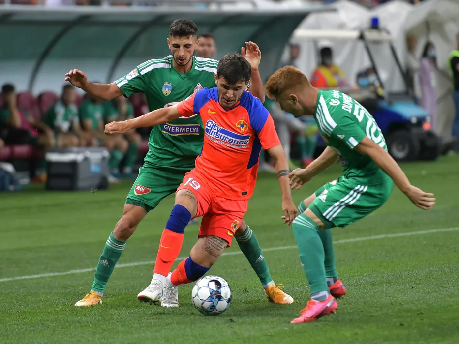 Nicolae Ionut Paun, Ianis Ilie Stoica si Andres Mihai Dumitrescu in meciul de fotbal dintre FCSB si Sepsi OSK Sfantu Gheorghe, contand pentru Liga 1 Casa Pariurilor, desfasurat pe Arena Nationala din Bucuresti, luni 23 august 2021. © FOTO:Razvan Pasarica/SPORT PICTURES