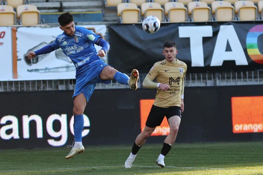 Echipele Chindia Targoviste si FC Voluntari (echipament albastru) s-au intalnit intr-o partida disputata in etapa 22 din Liga 1 de fotbal, sambata, 22 ianuarie 2022, la Ploiesti. GEORGE FLUSTER / MEDIAFAX FOTO