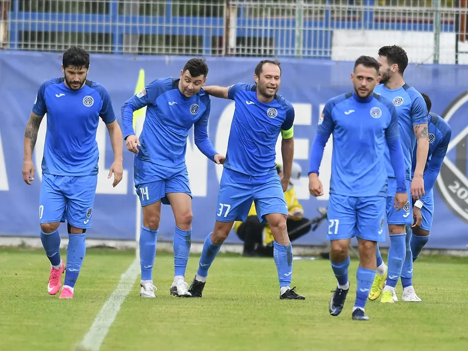 Raul Andrei Rusescu se bucura alaturi de Eugeniu Cebotaru, Georgi Velikov Pashov, Mihai Dobrescu si Cristian Tanase dupa un gol marcat in meciul de fotbal dintre Academica Clinceni si Sepsi OSK Sfantu Gheorghe, contand pentru Liga 1 Casa Pariurilor, desfasurat pe Clinceni Arena din Clinceni, sambata 31 octombrie 2020. © FOTO:Razvan Pasarica/SPORT PICTURES