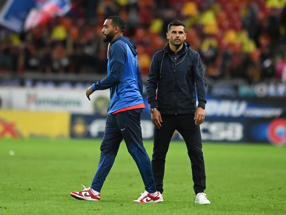 Abdel Slem Billel Omrani alaturi de Nicolae Dica dupa meciul de fotbal dintre FCSB si FC Arges, contand pentru Superliga Superbet, desfasurat pe Arena Nationala din Bucuresti, duminica 2 octombrie 2022. © FOTO:Razvan Pasarica/SPORT PICTURES