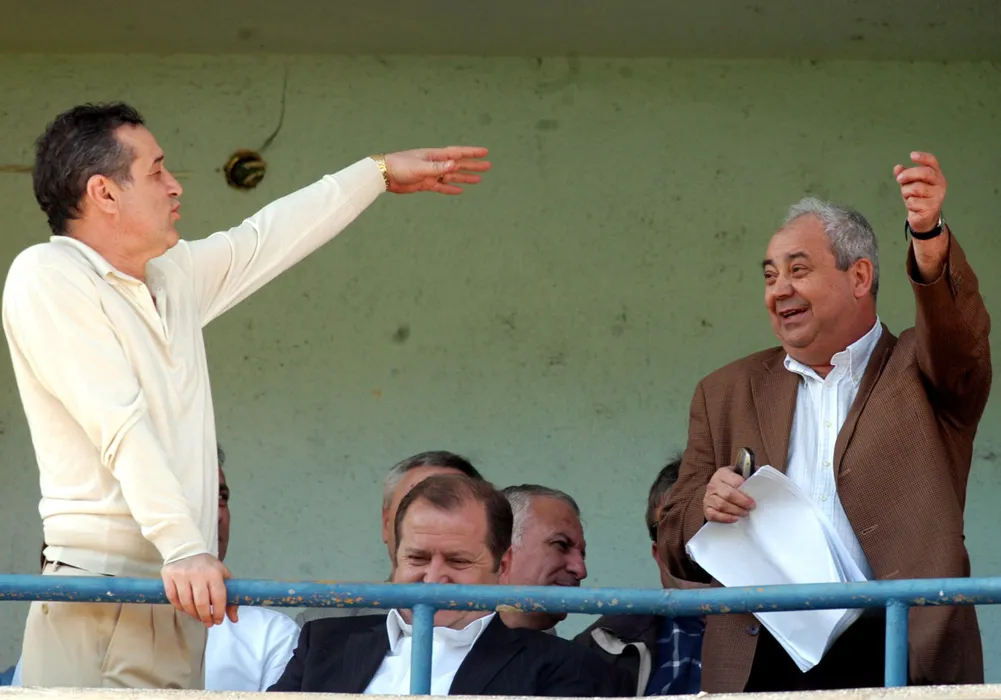 Gigi Becali (finantator Steaua) si Ioan Horoba (vicepresedinte Gloria Bistrita).